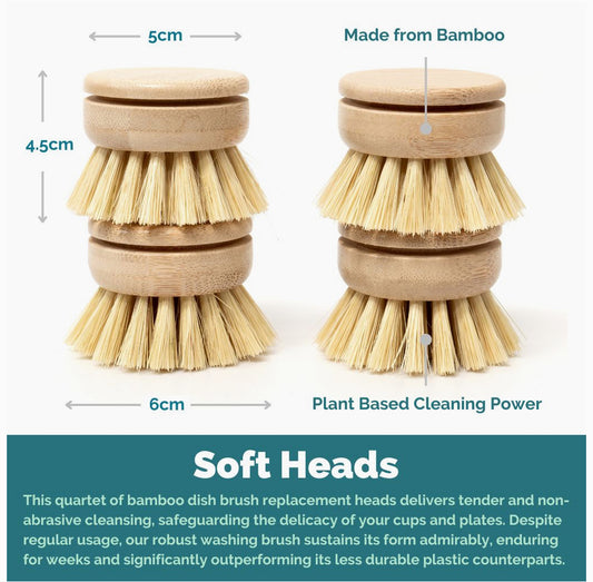 Replacement Dish Brush Heads | Eco Bamboo (Pack of 4)
