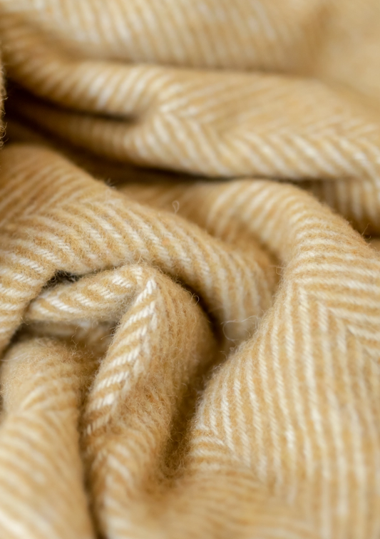 Recycled Wool Blanket in Mustard Herringbone