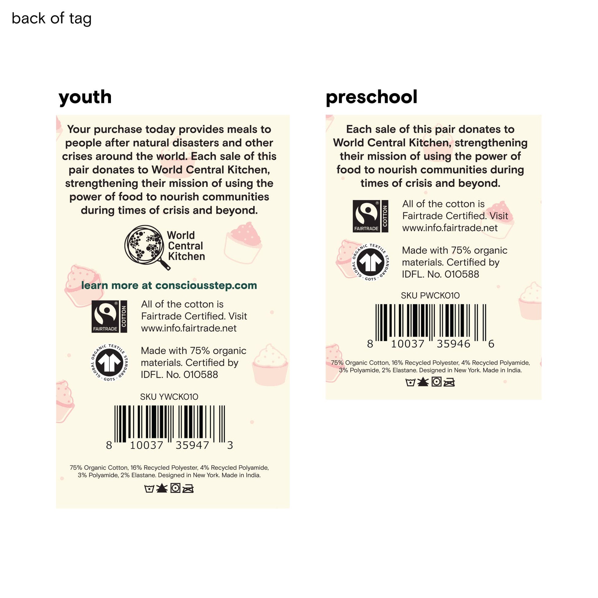 • Each pair supports World Central Kitchen and their work to provide meals to people in need when disaster strikes.